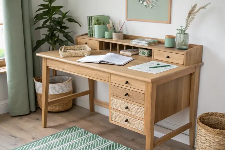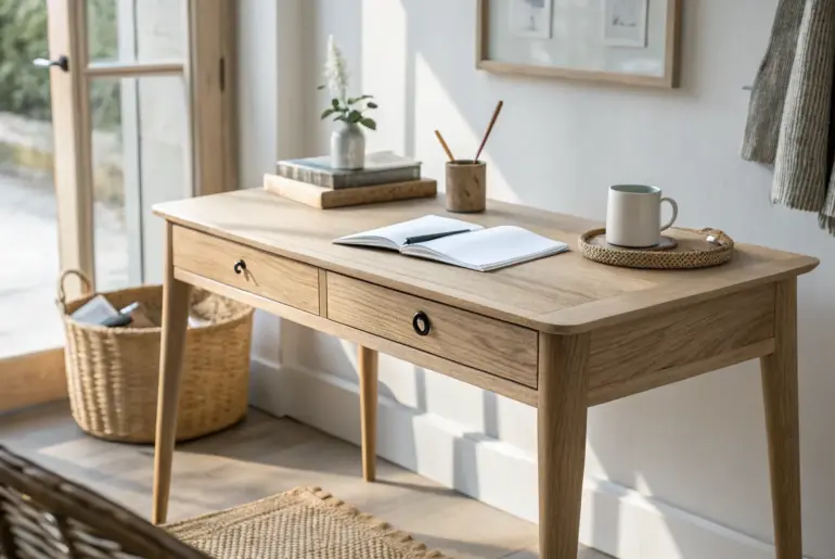 A good home office setup is equal parts cozy, hardworking, and totally you. Corner Desk That Saves Space Space-saving corner desk in light oak—minimal, warm, and perfect for a calm home office. I love an L-shaped or corner layout because it turns awkward square footage into a super efficient workspace layout. In my own home office, a corner desk let me keep “computer stuff” on one side and sketching or paperwork on the other. Useful…