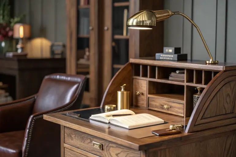 A men’s study should feel like a private little retreat where you can think, read, and get real work done without the rest of the house bleeding in. Executive Desk as the Centerpiece Hefty walnut executive desk with clean joinery—commanding, minimal, and naturally tidy. A solid, hefty wood desk placed out from the wall makes a men’s study feel commanding, and I’ve noticed it naturally keeps the room tidier. My favorite builds use thick tops…