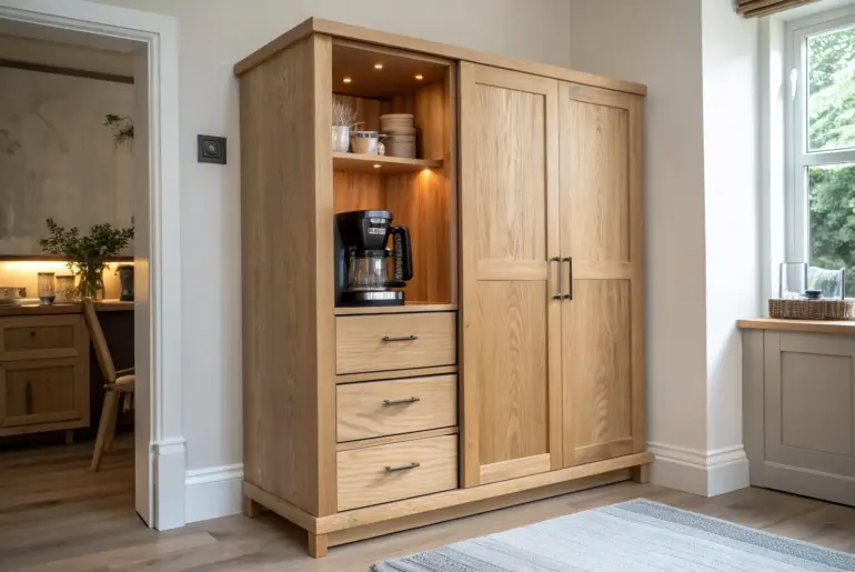 If your counters always seem to collect a mini army of small appliances, an appliance cabinet can be a total game-changer. Slide-Out Shelf Appliance Cabinet Slide-out shelf makes heavy appliances effortless—warm oak craftsmanship in a clean white cabinet. A slide-out shelf inside an appliance cabinet lets you pull a heavy appliance forward so you’re not wrestling it under an upper cabinet. I like building these trays from sturdy plywood with hardwood runners because they can…
