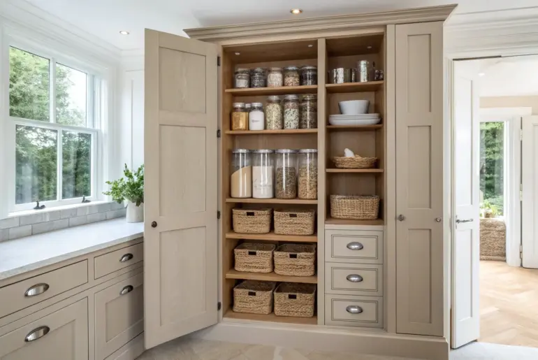 A good built-in pantry cabinet can turn everyday kitchen chaos into that calm, “everything has a place” feeling. I’ve built a lot of pantries over the years, and the best ones always blend right into the cabinetry while making storage crazy-easy to reach. Butler-Style Counter Nook Inside the Pantry Butler-style pantry counter nook: a mini prep zone with warm wood, bold accents, and calm order. A little pantry countertop inside your built-in is a game-changer…