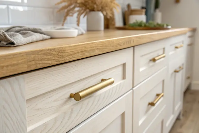 Kitchen cabinet pulls are the quickest way I know to change the whole vibe of a kitchen without touching a saw. Think of them like jewelry for your cabinets—small detail, big payoff when you match them to your door style, paint color, and countertops. Unlacquered Brass for a Living Finish Unlacquered brass pulls on navy cabinetry—patina that turns everyday use into heritage. If you like a kitchen that feels collected over time, unlacquered brass pulls…