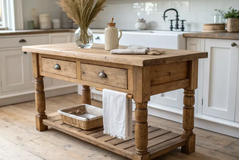 Old farmhouse kitchens have this cozy, been-around-forever feeling that makes you want to linger with a cup of coffee and a cutting board full of snacks. Salvaged Door Turned Island Top A salvaged wood door becomes a one-of-a-kind island top—full of character and charm. This one always gets a double take: I’ve used a salvaged wood door as an island top, keeping the panels and old nail holes visible. With a protective finish, it becomes…