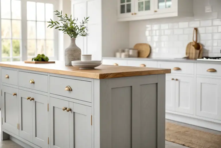 If you love a kitchen that feels bright but still has a little grounding, gray and white cabinets are such a sweet spot. Gray Island With White Perimeter Cabinets Deep gray wood island pops against crisp white cabinets—cozy focal point, airy Scandinavian vibe. When I build or repaint an island in a deeper gray island shade and keep the surrounding white cabinets, it instantly becomes the cozy focal point without shrinking the room. Possibly handy…