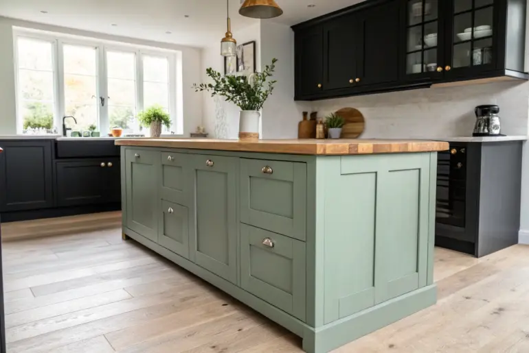 Green and brown is one of my favorite kitchen combos because it feels earthy, cozy, and still totally fresh. If you love wood grain as much as I do, these ideas will help you mix green tones with brown wood warmth in a way that looks intentional (not accidental). Upcycled Dresser Turned Green Island A forest-green upcycled dresser island topped with warm brown wood—bold, rustic, and refined. I’ve turned an old dresser into a green…