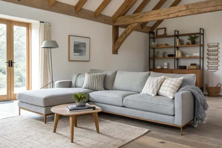 Grey and wood is my favorite kind of contrast: cool and calm on one side, warm and lived-in on the other. With the right mix of texture and tone, a grey and wood living room can feel both modern and seriously cozy. Grey Sectional With Wood-Leg Accent Chairs Grey sectional, airy balance: a wood-leg chair that breaks up the grey and keeps it light. A grey sectional can look huge, so I like breaking it…