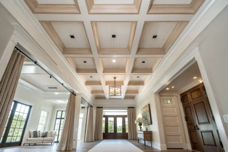Your foyer ceiling is the first “overhead handshake” your home gives, and it can do way more than just sit there looking flat and forgotten. Classic Coffered Grid Classic coffered grid depth—subtle contrast and shifting daylight shadows for a custom foyer look. A coffered ceiling gives your foyer that “custom home” depth, and I love how the shadows shift throughout the day. I’ve made coffers with simple trim boxes, then painted the beams and insets…