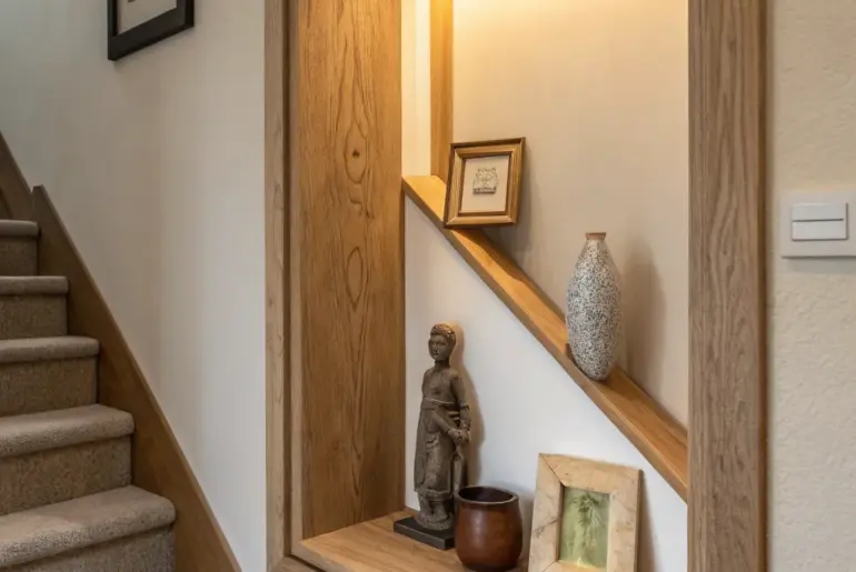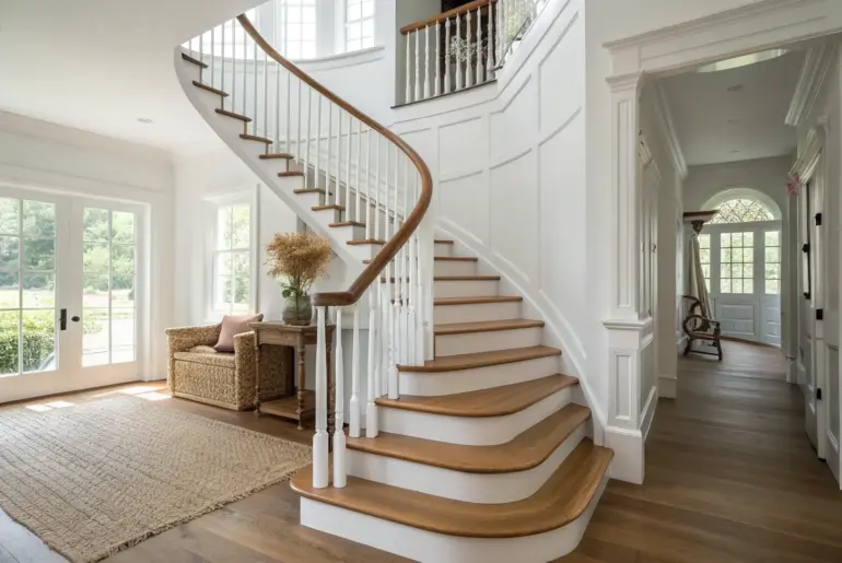 A traditional staircase can be the one detail that makes your whole entryway feel timeless and pulled together. Picture-Frame Molding Gallery Run Picture-frame molding that climbs the stairs—classic depth, clean lines, bold color. Picture-frame molding up the stairway is a classic trick that adds depth without clutter. I’ve laid it out so the frames follow the rise of the stairs, and it makes the whole wall feel like intentional architecture. Possibly handy products: Pre-Cut Picture…