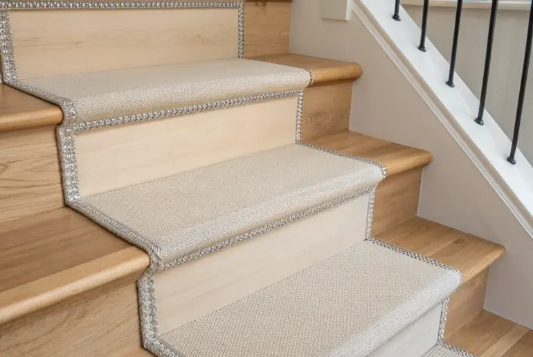 An open tread staircase is gorgeous, but it can feel a little slippery and loud when it’s just bare wood. Centered Mini-Runner Strips Centered mini-runner strips keep both wood edges visible—clean lines with cozy texture. If you want wood showing on both sides, try narrow stair runner strips centered on each open tread like a repeating runner. I mocked this up with kraft paper first, and that little planning step saved me from crooked lines…