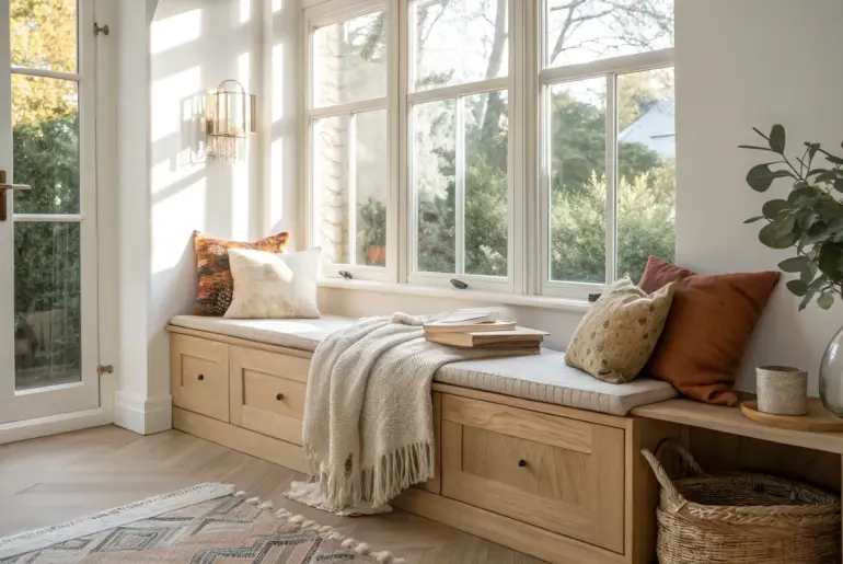 A bay window seat is one of those projects that instantly makes a room feel finished, cozy, and a little bit magical. I love how it turns that tricky angled space into a hardworking nook with comfort, storage, and a view. Shaker-Style Panel Front Shaker-style panel-front bay window seat—warm oak lines and a custom, high-end farmhouse feel. For that timeless farmhouse vibe, I’ve done a shaker-style front with simple rails and stiles on the bay…