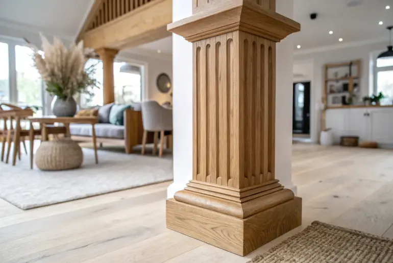 An interior column can feel like it’s in the way—until you design around it and let it help the room make sense. Stacked Trim Base and Crown Detail Chunky stacked base + crisp crown trim turns a plain interior column into custom carpentry. Building up a chunky column base and a crisp crown detail is a classic woodworking trick that makes a plain post look custom. I’ve layered simple molding profiles on a square interior…