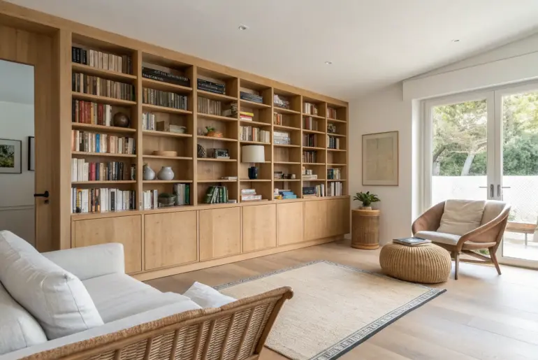 A library living room is the sweet spot where book storage meets real-life lounging, not a room you’re afraid to touch. I’ve built and styled enough of these to know the magic happens when the shelves feel architectural and the seating feels sink-in comfortable. Conversation-First Seating Layout A round oak table between two chairs turns your library into a space made for talking. To make a library living room feel social, I arrange chairs to…