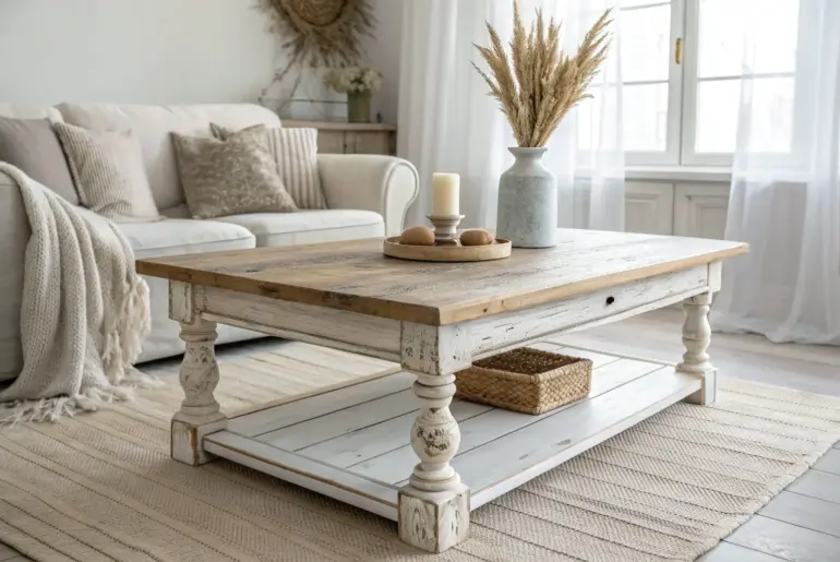 Modern shabby chic is my favorite kind of contrast—clean, bright lines paired with timeworn wood that feels like it has a story. If you want a living room that’s romantic and cozy without looking cluttered, these ideas are exactly what I lean on in my own projects. Make a Distressed Wood Coffee Table the Star A chunky distressed wood coffee table brings modern shabby chic warmth with clean lines. Nothing says modern shabby chic living…