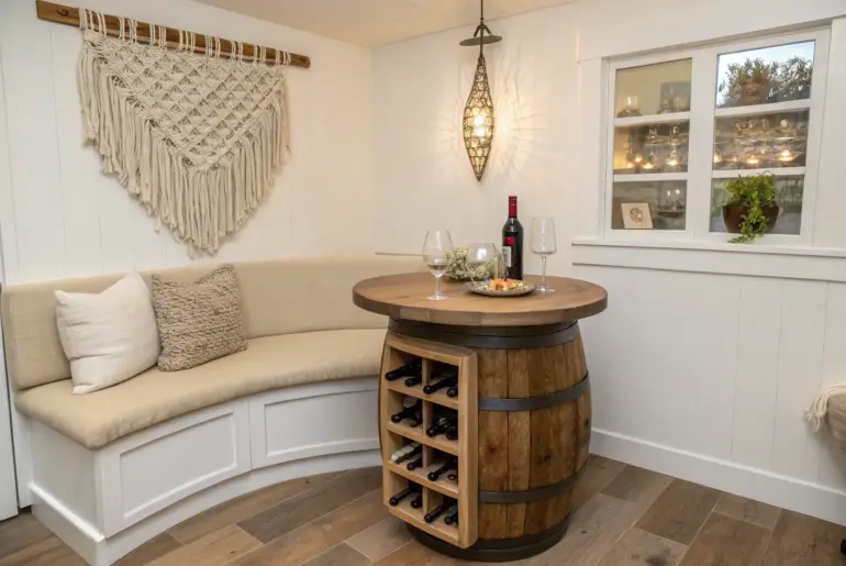 A small wine tasting room can feel downright magical when every inch has a job and a little mood. I’ve built a bunch of tiny tasting nooks over the years, and the secret is always the same: smart storage, cozy seating, and warm wood tones that make people want to linger. Reclaimed Wood “Cave” Accent Wall Layered reclaimed wood wall brings cozy cave vibes to a small, minimalist wine tasting nook. If you can’t do…