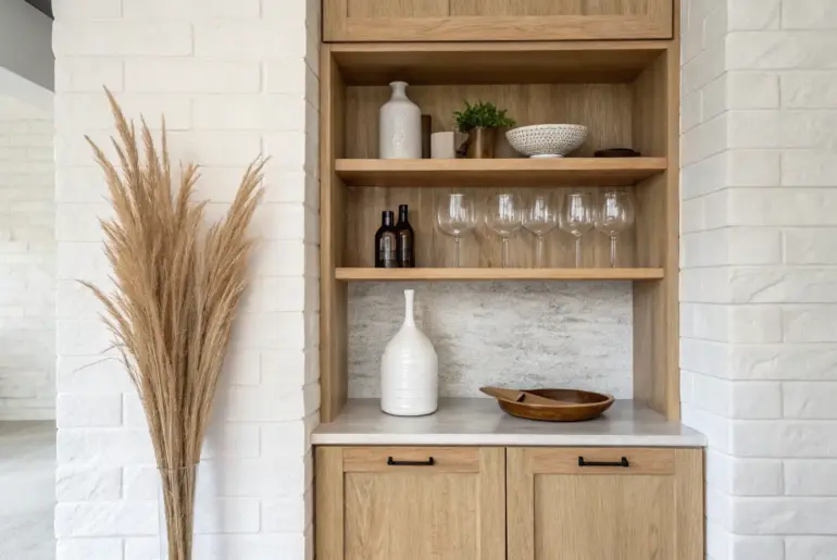 A built-in dry bar is my favorite way to turn that random wall, hallway, or awkward nook into an honest-to-goodness entertaining zone—no plumbing required. Recessed Alcove Dry Bar Recessed alcove dry bar: a slim built-in counter and shelves with seamless, scribed oak trim. If you’ve got a niche or shallow bump-out, I love turning it into a recessed built-in dry bar with a tight little counter and shelves that don’t steal walkway space. I’ve scribed…