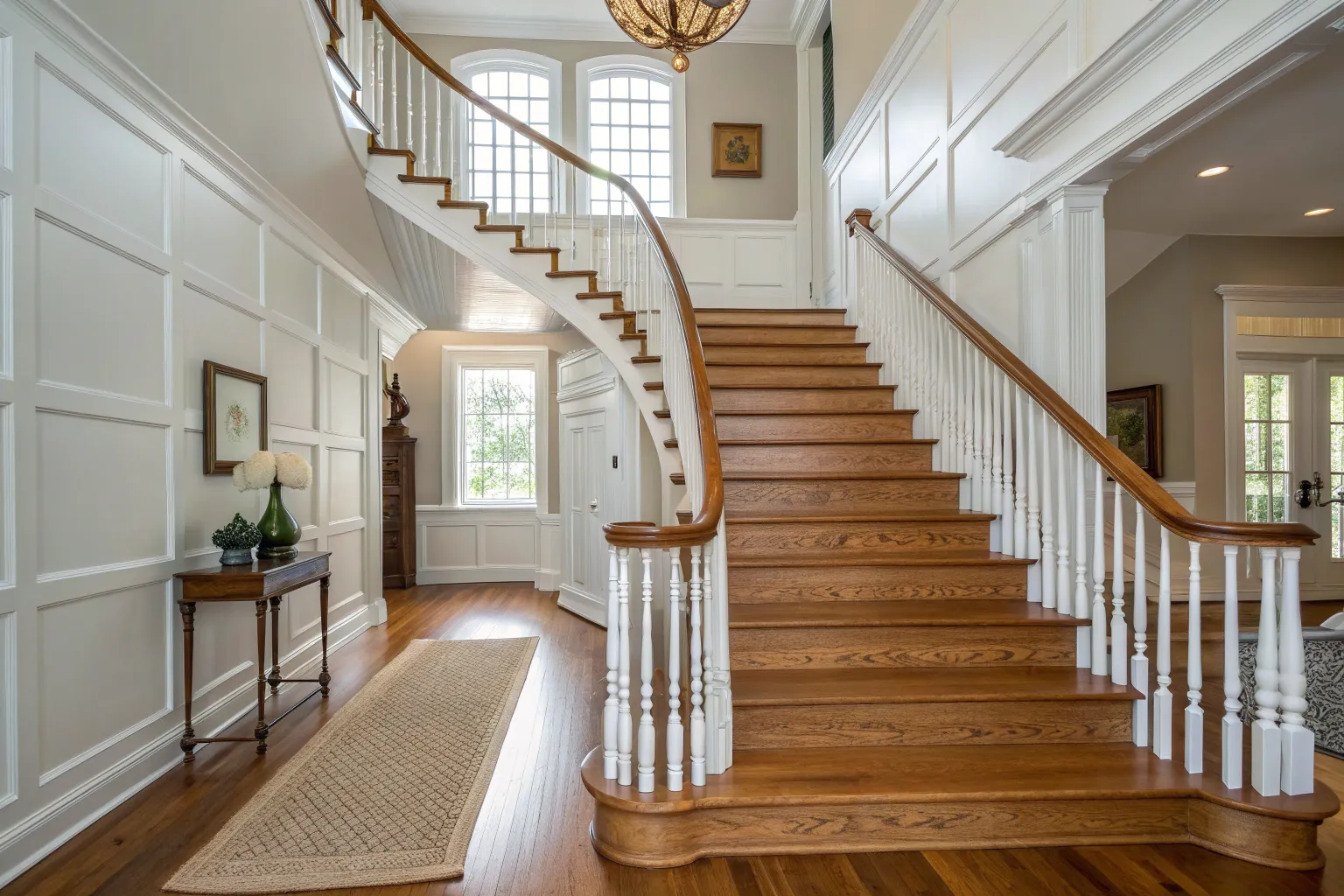 A stair runner or long foyer rug adds warmth and keeps footsteps from echoing, which is huge in a colonial foyer with hard floors. I’ve found that a classic pattern hides dirt and makes the entry feel collected instead of sterile.