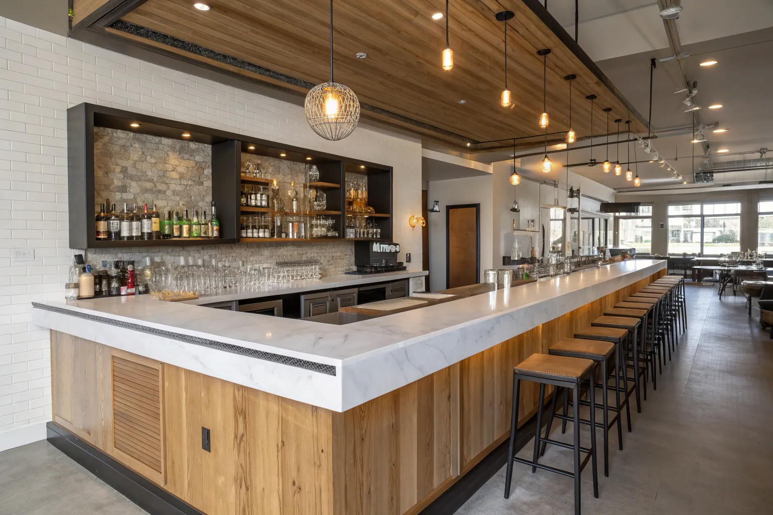- Heavy-Duty Bar Stools: Complement the modern architectural lines of your new waterfall bar with sturdy, minimalist seating for customers.