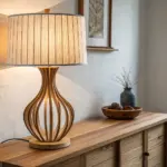 - Distressed Ceramic Table Lamp: Add soft lighting and earthy texture to complement your wood furniture for a cozy, inviting atmosphere.