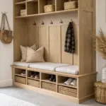 - Woven Storage Baskets for Shelves: Organize your entry clutter with these textured baskets that fit perfectly into bench cubbies for a tidy look.
