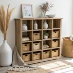 - Large Wood Vase: Anchor your cubby shelving with a substantial wooden vase that complements natural textures and adds visual weight.