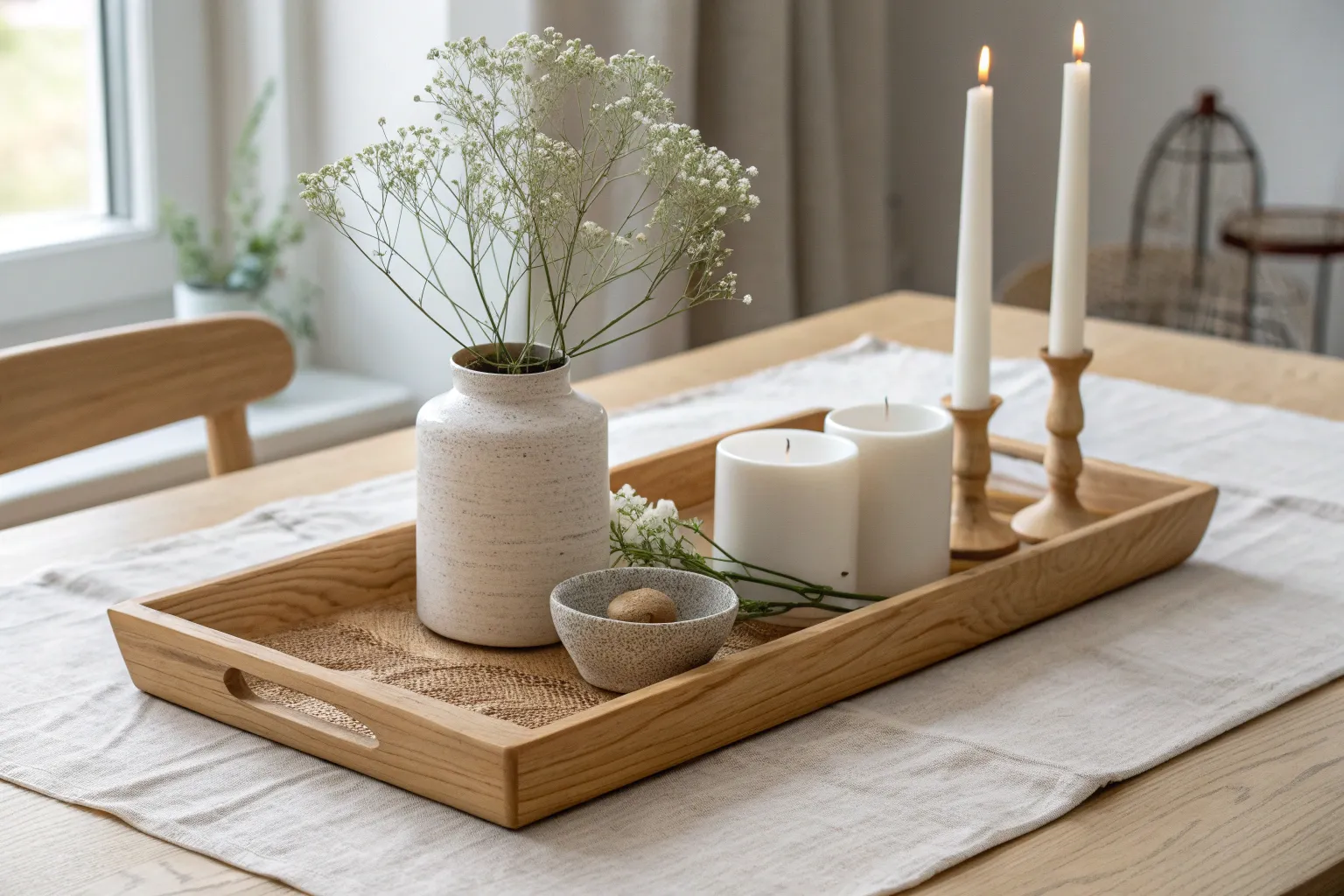 This one’s a little nerdy-fun: I’ve embedded small magnets under a wood tray so little metal-based pieces (like candle holders or mini vases) stay put and can be rearranged fast. It’s the coolest way I’ve found to keep a dining table tray looking styled even when the table gets bumped during real life.