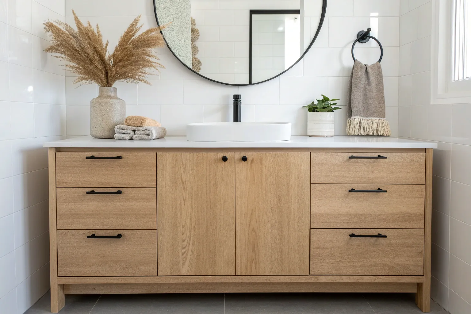 Elevate your bathroom with matching accessories that blend Scandinavian minimalism with boho charm. 🛁✨ #BathroomUpgrade #MinimalistStyle