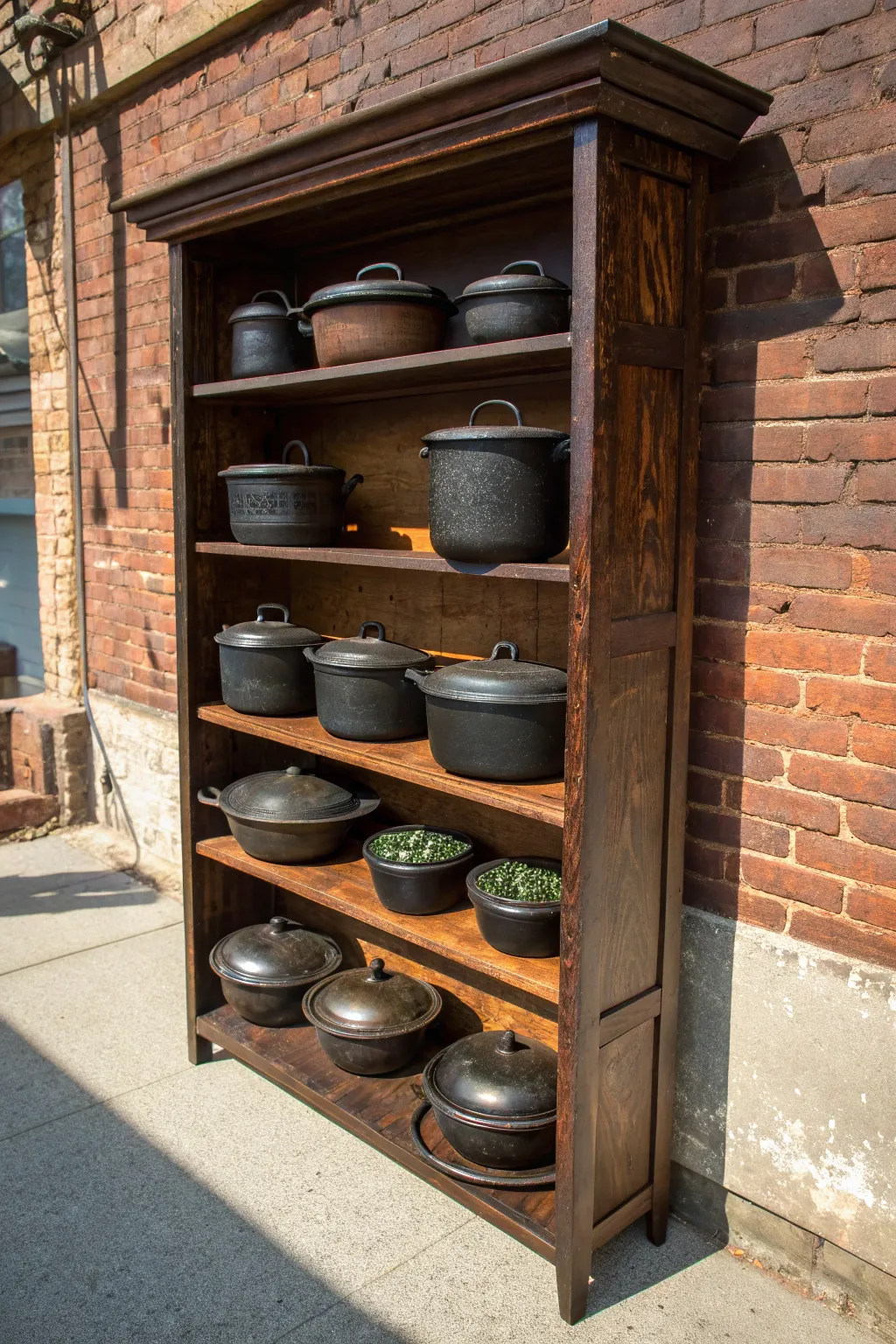 Transform an old bookshelf into a storage unit for your cast iron collection. This adds a personal touch and a sense of history to your storage solution.