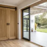 • Wooden French Doors with Glass Panels: Install classic French doors to instantly brighten your walkway and create an elegant, open transition space.