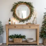 For a clean end table moment, I place two white candles on a birch wood slice with just one eucalyptus sprig. I do this when I’m craving calm Christmas vibes, and the pale wood grain keeps it cozy without feeling busy.