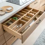 • Drawer Organizer Trays: Keep cords and devices separated neatly inside your drawer by using modular organizing trays for instant order.