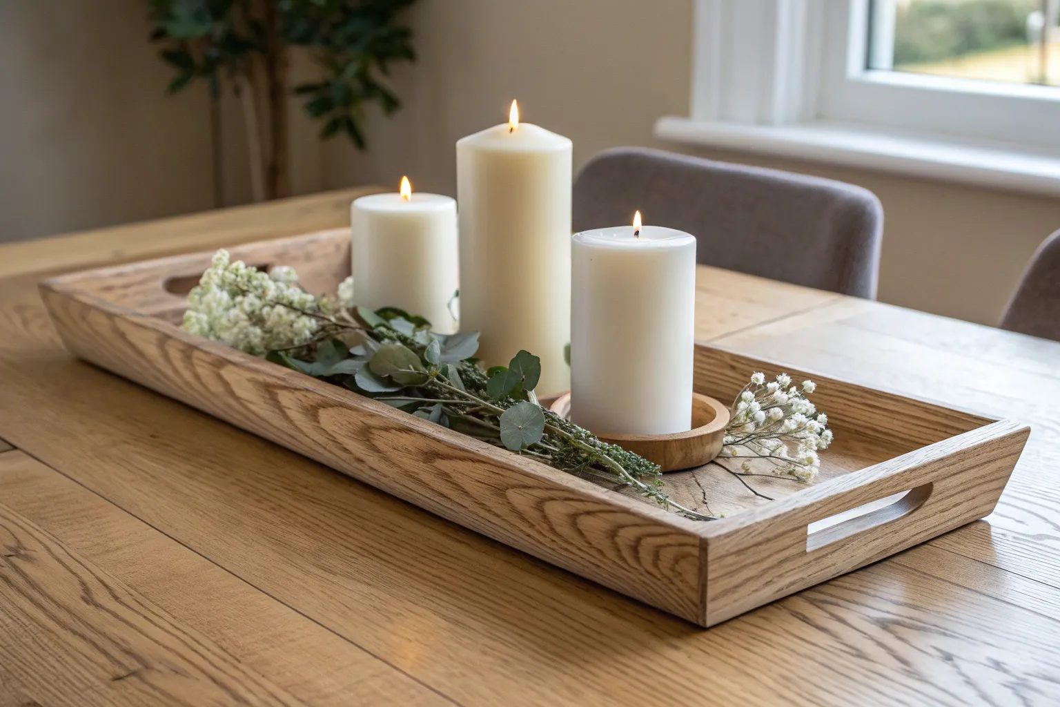 - Small Wooden Serving Tray: Anchor your centerpiece with a natural wood tray, providing the perfect warm base for candles and small decor.