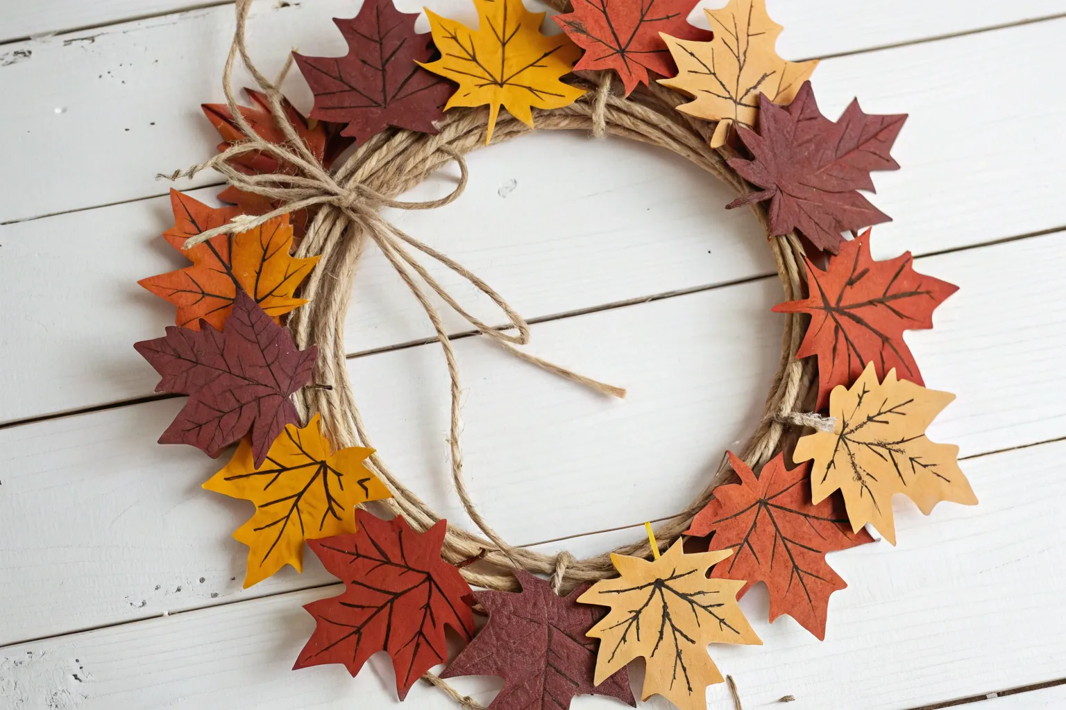 Transform your front door with a wreath made of faux autumn leaves. Cut out leaves in various shades of red, orange, and yellow using your Cricut, and glue them onto a circular base for a stunning entrance.
