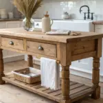 A sturdy counter gives a farm shop interior that “working store” feel, especially with a butcher-block style wood top that can handle bags, boxes, and paperwork. I’ve sealed wood tops with a tough finish, and they hold up beautifully while still looking warm.