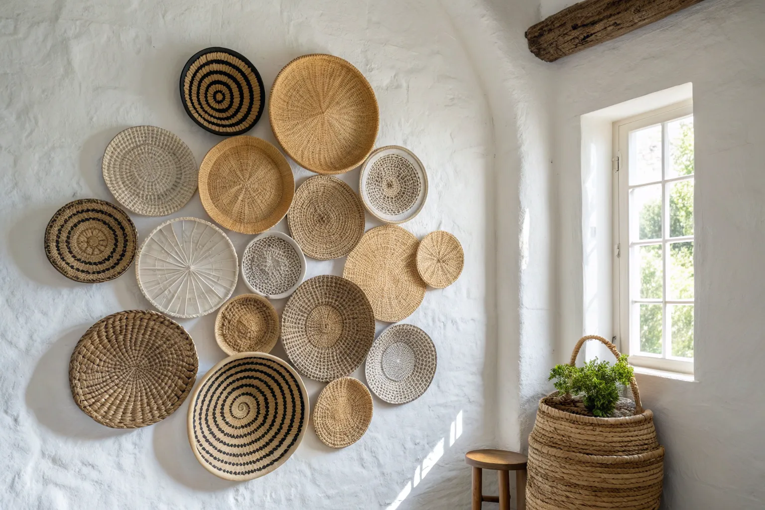 - Set of Small Woven Baskets: Curate your wall quilt easily with a varied set of small woven baskets perfect for arranging in patterns.