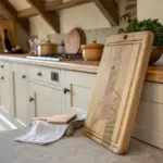 • Small Wooden Cutting Board: Layer your shelf display by leaning a small, warm-toned wooden cutting board for texture and height.