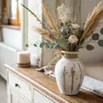 - Faux Potted Greenery or Dried Stems: Complete your vignette by placing a small pot of faux greenery or dried stems nearby for texture.