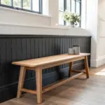A simple bench looks ten times more built-in when it sits against farmhouse wall paneling, especially with a few hooks above. I’ve made this combo for a narrow entry, and it turned an awkward wall into the most useful spot in the house.