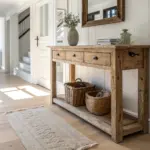 - Entryway Wood Bench: Create a welcoming focal point with a simple wooden bench that provides seating and extra storage space.