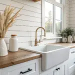 - Vertical White Shiplap Paneling: Create that classic farmhouse backdrop easily by installing pre-primed vertical planks for a clean, textured look.