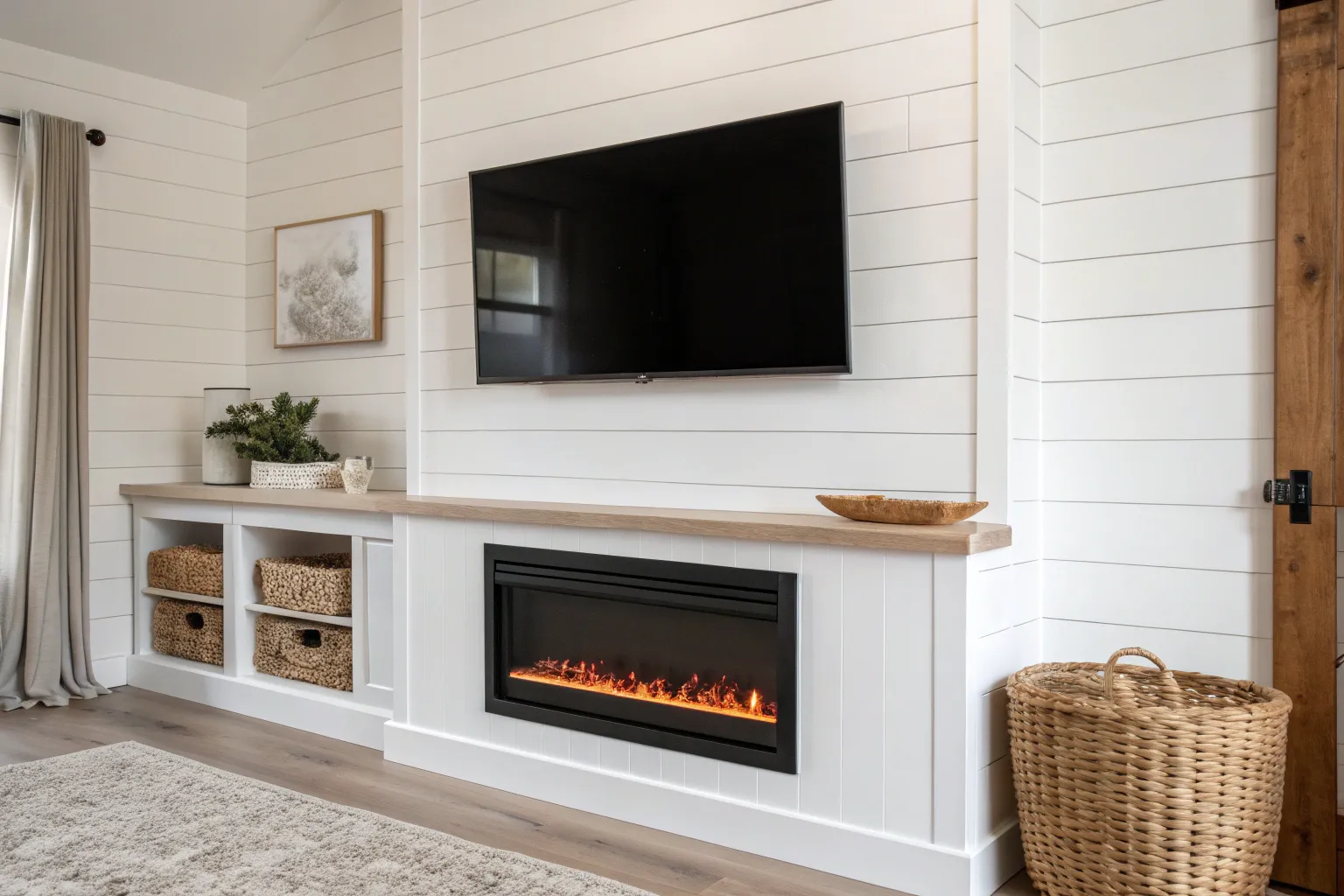 - Woven Storage Baskets: Keep kindling or blankets organized in your built-in shelves using textured woven baskets for a tidy, natural look.