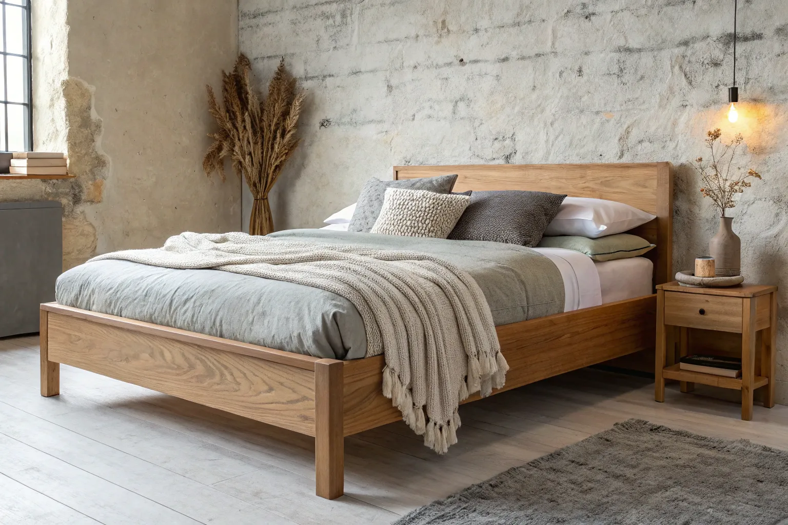 - Textured Linen Throw Blanket: Soften the hard industrial edges of concrete and wood with a cozy, neutral throw draped over your bed.