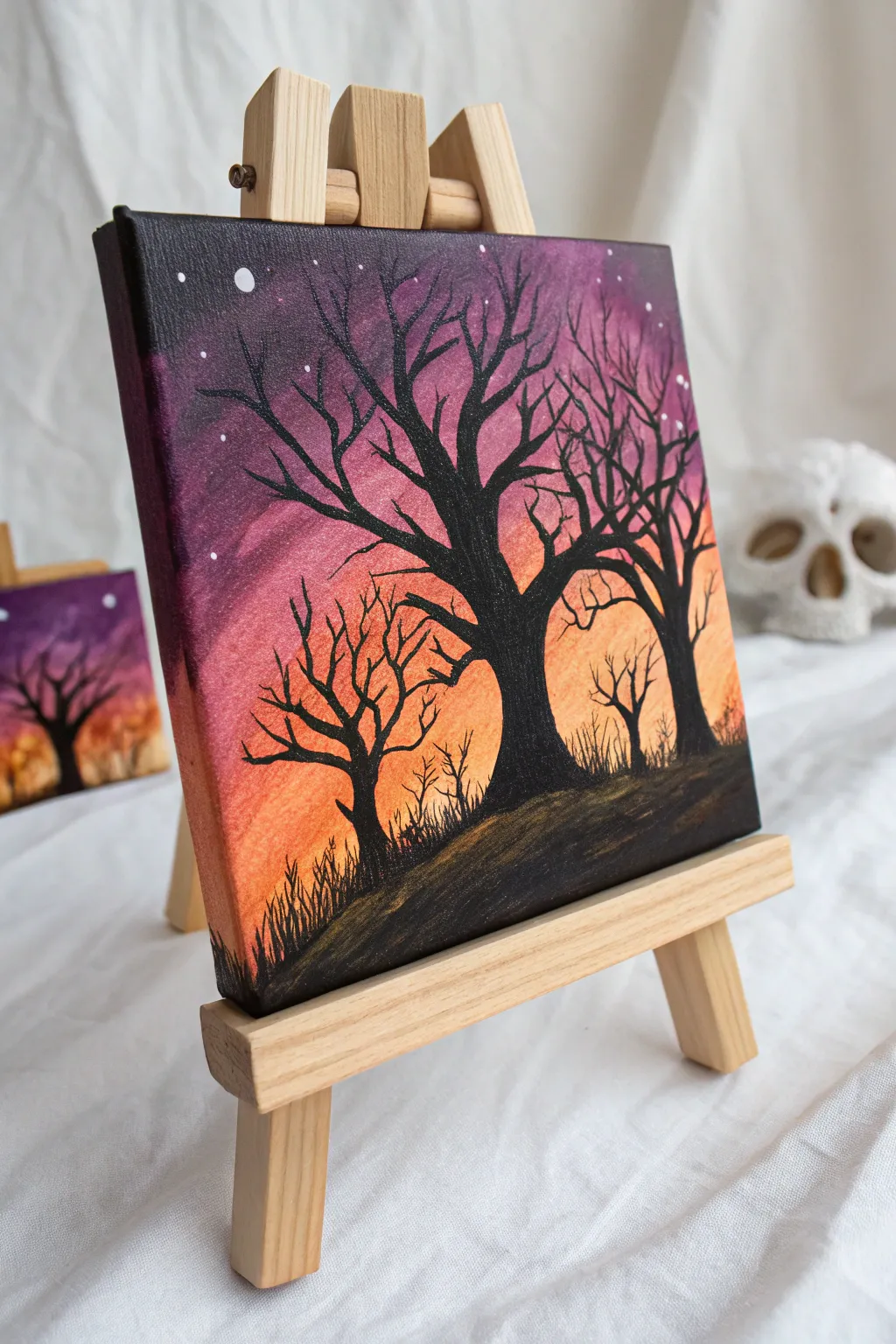 • Acrylic Paint Set: Discover vibrant colors for your spooky forest sunset. Paint your masterpiece today!