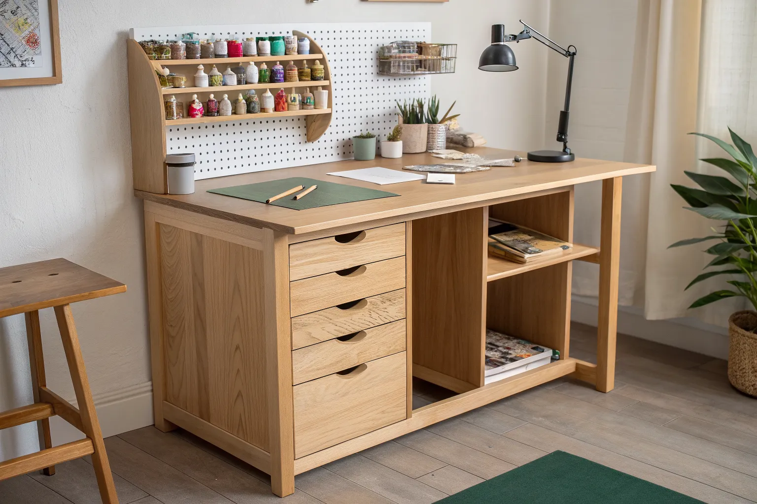 I’m big on a hobby desk with a WIP drawer where unfinished projects live, because it keeps dust, pets, and accidental bumps off your work. I started doing this after losing tiny pieces to chaos, and I’ve never gone back.