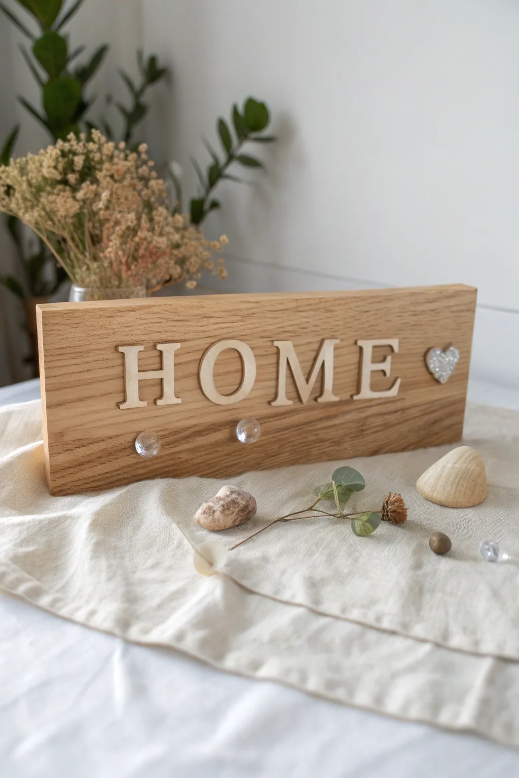 For a real wow moment, I pour a thin layer of clear resin over “HOME” and embed tiny keepsakes like dried flowers or a little pinch of beach sand. I’ve done this for friends who moved into new places, and it turns a simple home sign into a memory capsule.