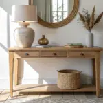 • Entry: slim wooden bench or console.