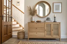 • Entry: slim wooden bench or console.