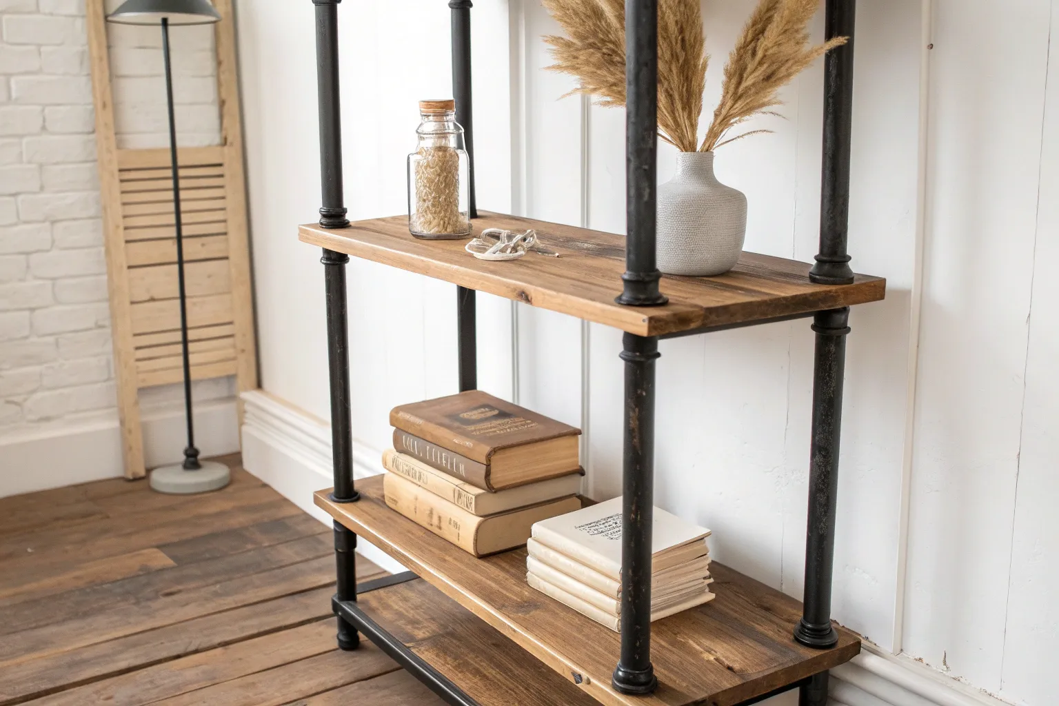 • Decorative Dried Pampas Grass: Soften the hard industrial lines of your shelving unit with natural, textured decorative accents.
