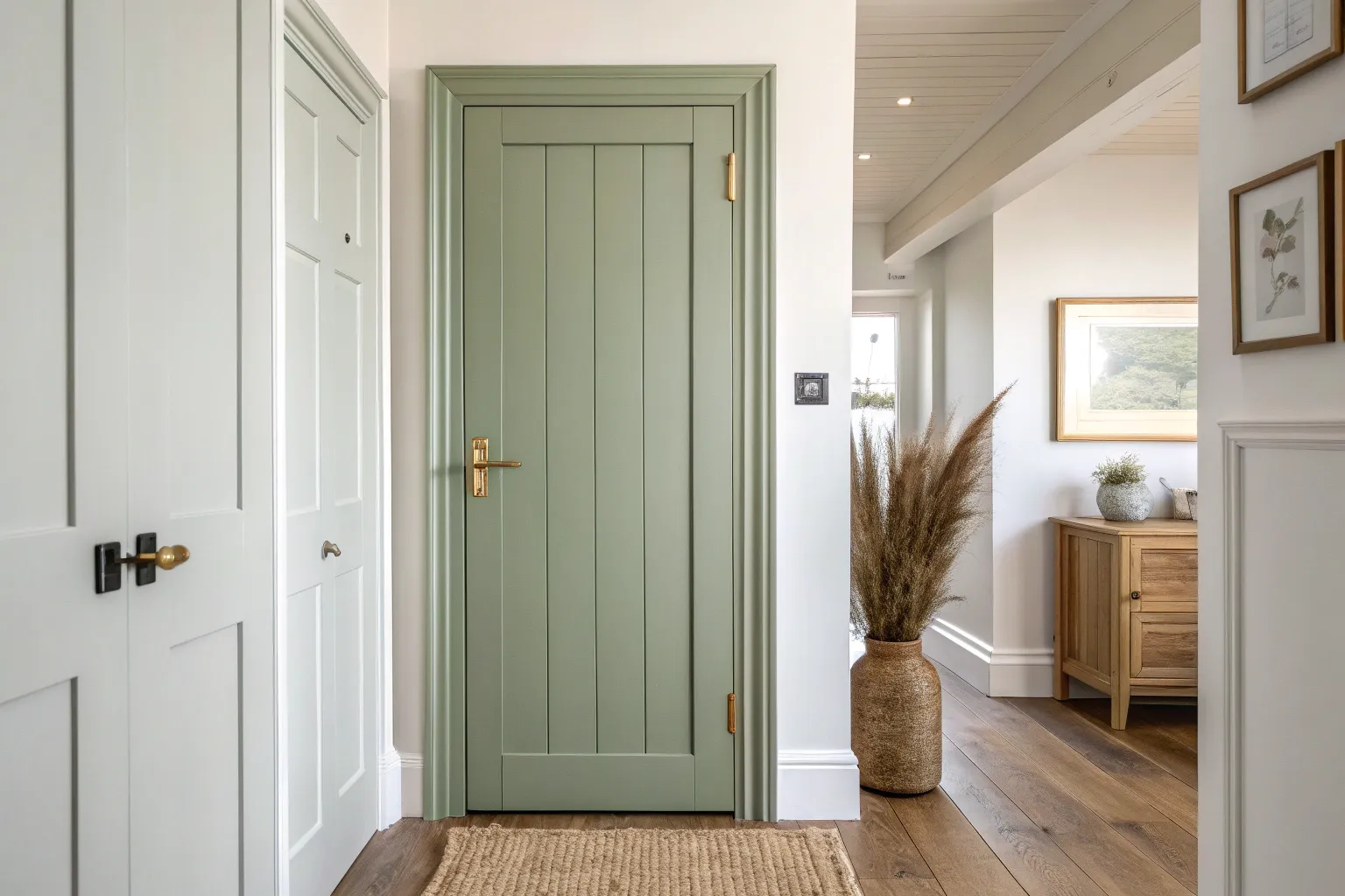 When I want the fastest, biggest impact, I paint the entire interior door a bold color and leave the trim clean for contrast. I’ve done this in my own hallway, and it instantly made the door feel like a deliberate design choice instead of an afterthought.