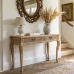 • Large Round Woven Wall Hanging: Mimic the organic curves and textures seen in this entryway with a natural fiber macrame wall hanging.