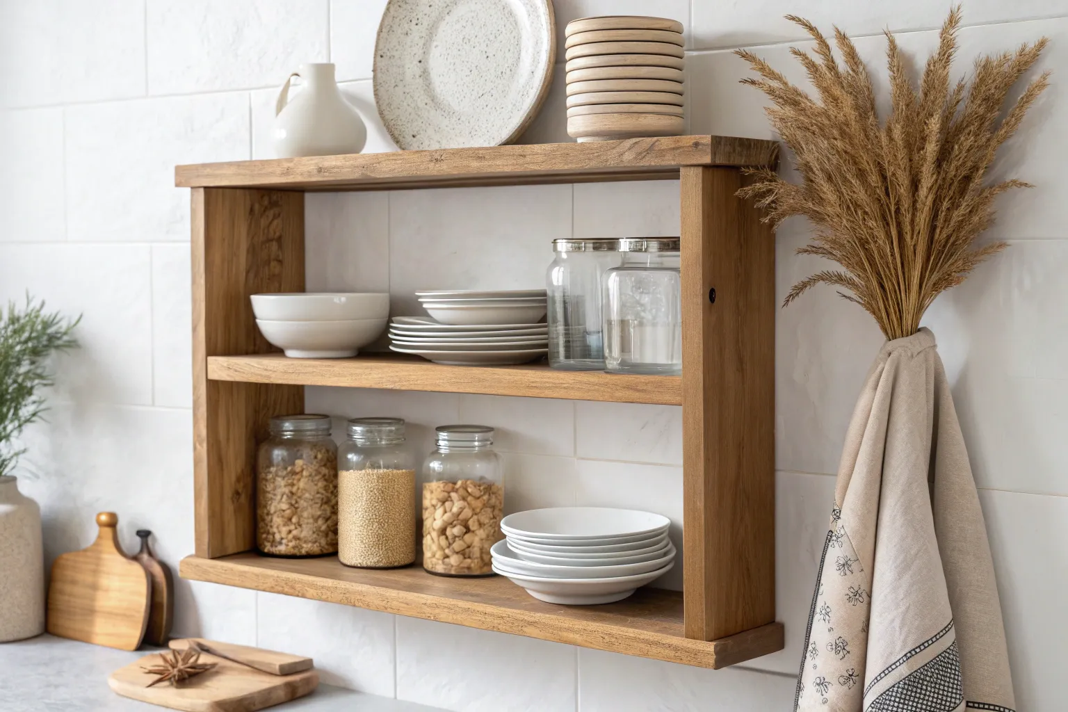 I’ve built simple floating shelves from reclaimed wood, and they instantly make mugs, bowls, and jars feel curated instead of crammed in cabinets. I keep mine styled with a “use it daily” rule so the display stays pretty and practical.