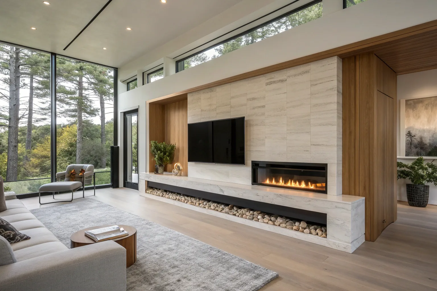 When clients want modern luxury without cold vibes, I steer them toward white oak built-ins framing the fireplace. I’ve watched that one wood choice make stone, glass, and metal finishes feel instantly more inviting.